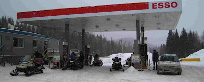 Mais c'était ma faute... Mon compagnon de route désirait m'attendre (c'est tout à son honneur), il s'est donc rangé sur la bas côté (traduction : 2 mètre en bas, sur le côté). C'est lourd une motoneige, croyez-nous.